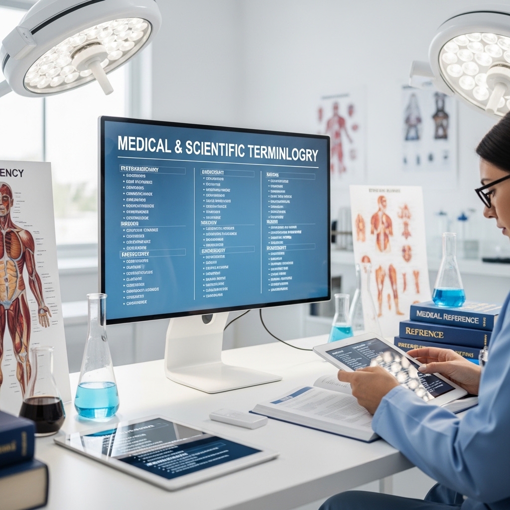 The terminology of clinical and laboratory research that appears in academic and research transcription, expert witness depositions, and regulatory proceedings: the research design terms (the RCT, the cohort study, the case-control study, the systematic review), the statistical terms (the p-value, the confidence interval, the odds ratio, the hazard ratio, the NNT — each defined and contextualized for the transcription professional who must render these terms accurately in expert testimony), and the laboratory science terminology (the molecular biology terms, the assay terminology, the laboratory measurement units and their abbreviations). 🔬
